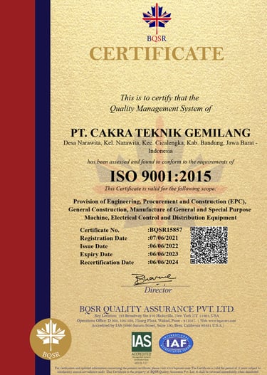 Sebagai langkah strategis dalam meningkatkan profesionalisme dan daya saing, pada 12 Desember 2020 kami resmi bertransformasi menjadi PT. Cakra Teknik Gemilang. Dengan pengalaman lebih dari satu dekade, kami berkomitmen untuk menghadirkan kualitas terbaik dan didukung oleh tenaga ahli yang kompeten serta teknologi yang terus berkembang.